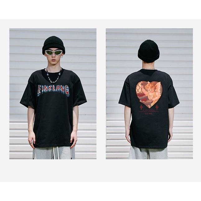 Detail RDGF Kaos Oversized Pria Hitam Putih Kaos fashion jalanan Amerika kaos hitam/A0196