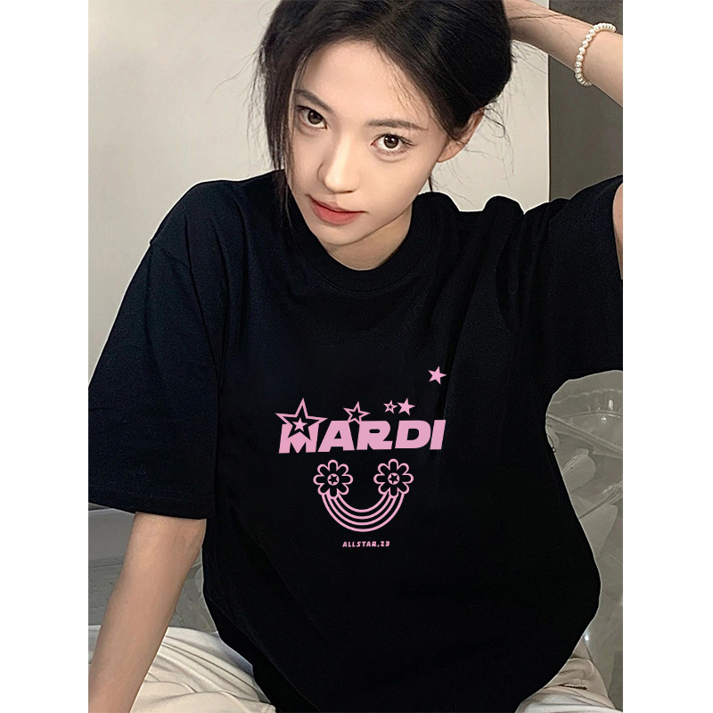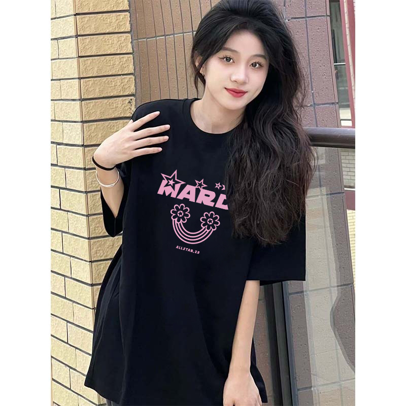 Detail RDGF Kaos Wanita Oversized Hitam bentuk pelangi merah muda T-shirt hitam wanita/A0936