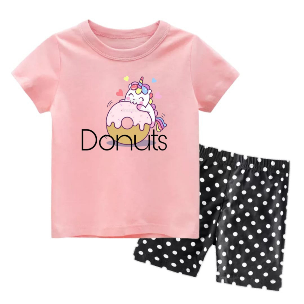 Rdkidzid SET Pendek Anak Perempuan Motif Pony Donuts