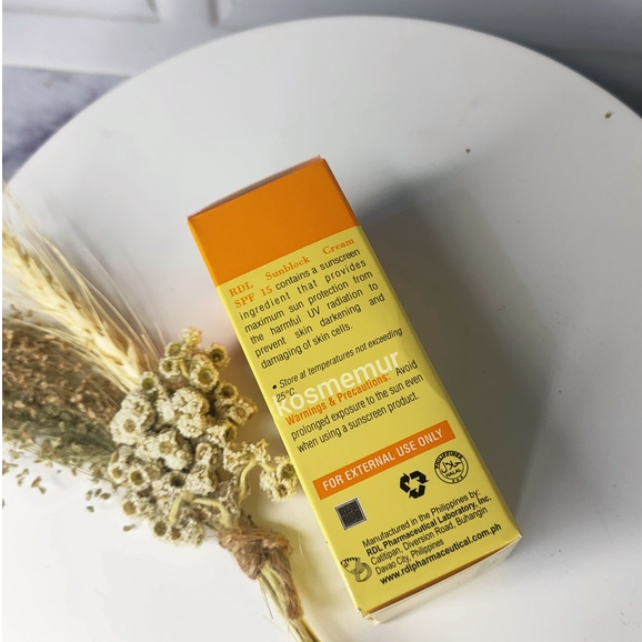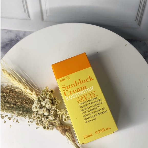 KETERANGAN: RDL Sunblock Cream mengandung bahan tabir surya yang memberikan perlindungan maksimal terhadap sinar matahari dari radiasi UV yang berbahaya untuk mencegah penggelapan kulit dan kerusakan sel kulit.
