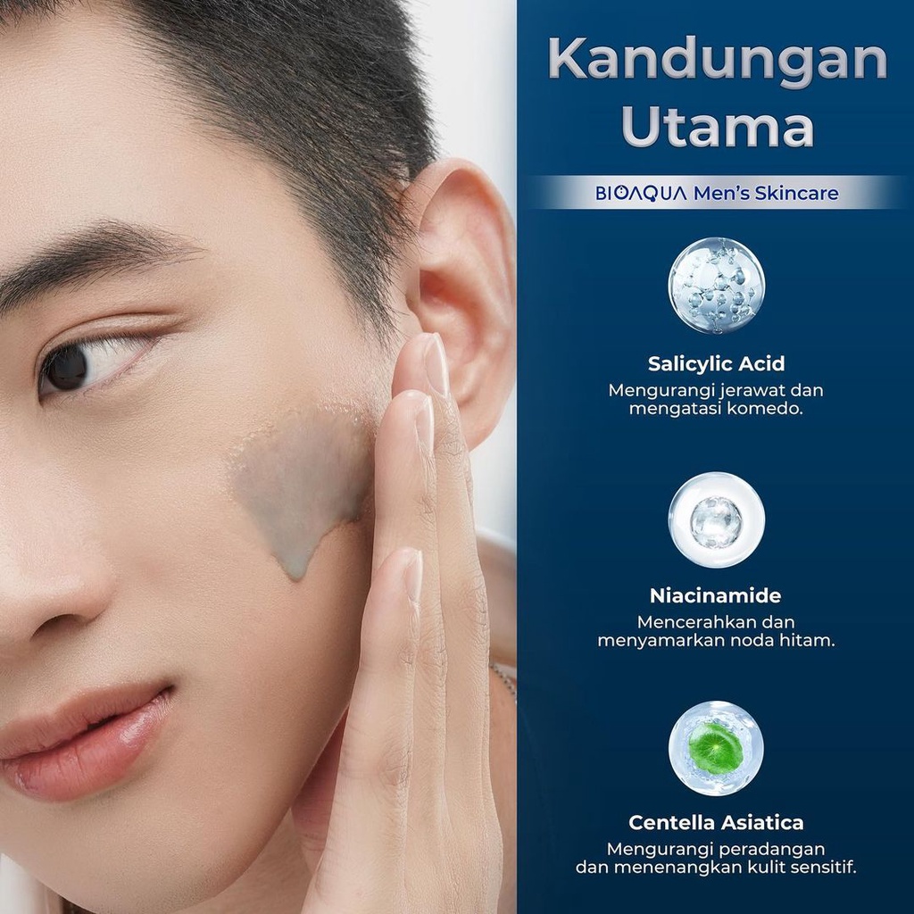Detail READY BIOAQUA Skincare Pria Pemutih Wajah Men's Skincare Oil Control & Memudarkan Bekas Jerawat Perawatan Wajah Pria With Toner Wajah