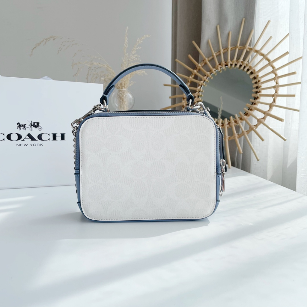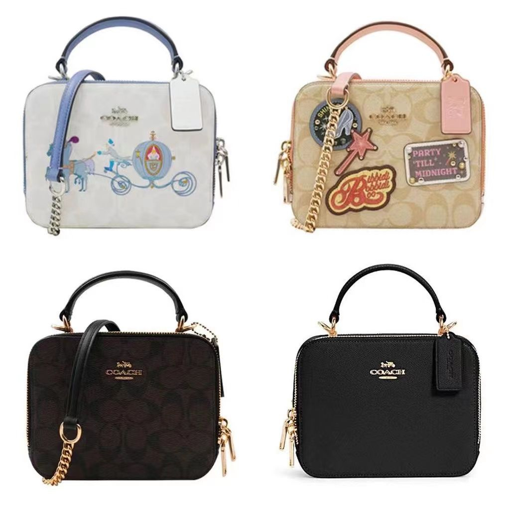 Coach Coach Lady Disney Limited cooperation model, Snow White pumpkin car diagonal cross box bag, double zipper capacity, with handle can be used for cross body, glacier white logo background and pumpkin car decoration are beautiful~ Size 18.14.6 #coach