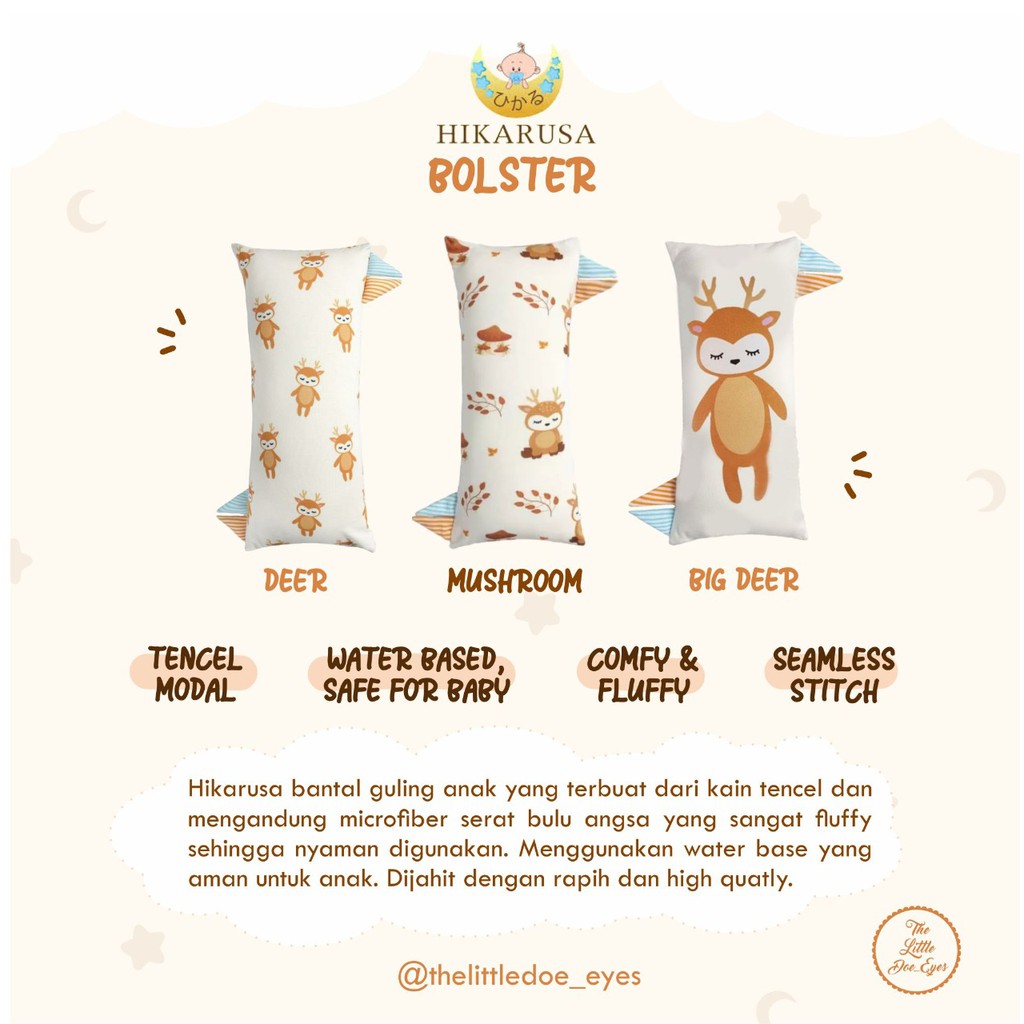 Siapa nih si kecil yang sulit tidur? Apalagi tidur siang😩😩 memang si kecil masih mempunyai pola tidur yang berantakan jadi perlu penyesuaian, ada beberapa faktor nih moms yang bisa membantu si kecil lebih mudah tidur seperti, isian bantal yang empuk dan aman jangan menggunakan yang berbentuk butiran (beads) karena beresiko tersedak bila terjadi kebocoran, lalu carilah bantal yang hypoalergenic untuk meminimalisir risiko alergi pada bantal, terus pakai juga yang bahannya halus di kulit sekecil👶🏻👶🏻 .. Nah semua itu ada pada Hikarusa Bolster yang lembut dan aman dipakai oleh si kecil, bahan sarung bantalnya terbuat dari tencel sehingga sangat lembut pada kulit baby, isiannya menggunakan micro giber bulu angsa sintetis sehingga super comfy and fluffy🥰🥰 gak cuma itu bahannya pun water based safe for baby dan gak membuat gerah😴😴 .. Available -Motif: 🦌 Deer 🦌 Big Deer 🍄 Mushroom