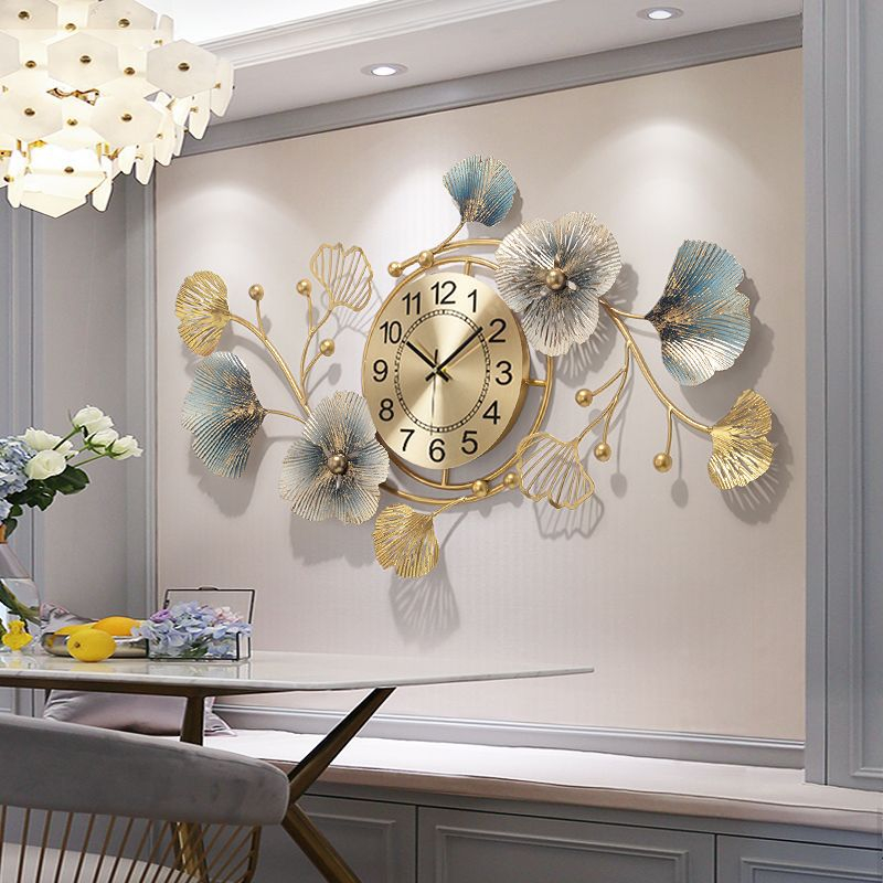 Perlengkapan Rumah > Dekorasi > Jam Dinding > ✔️Ready + Kemasan Aman✔️Jam Dinding Dekorasi Ginkgo Daun Seni Atmosfer Baru Cina Kreatif(83*48cm)Mode Bisu Untuk Ruang Tamu / Makan