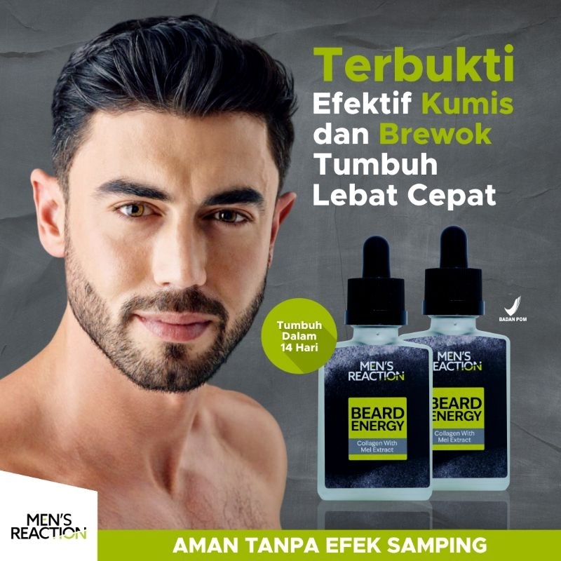 MENS REACTION Beard Energy produk pria yang dikhususkan untuk merawat jenggot maupun kumis pria. Mengandung bahan alami yang dapat membantu untuk pertumbuhan jenggot dan kumis, menghitamkan jenggot dan kumis, serta memelihara dan memperkuat akar brewok dan rambut pada jenggot maupun kumis.