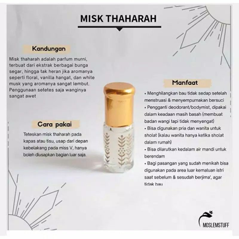 misk taharah original 3ml Hanya dipakai setetes saja, aroma ini akan awet selama berjam-jam