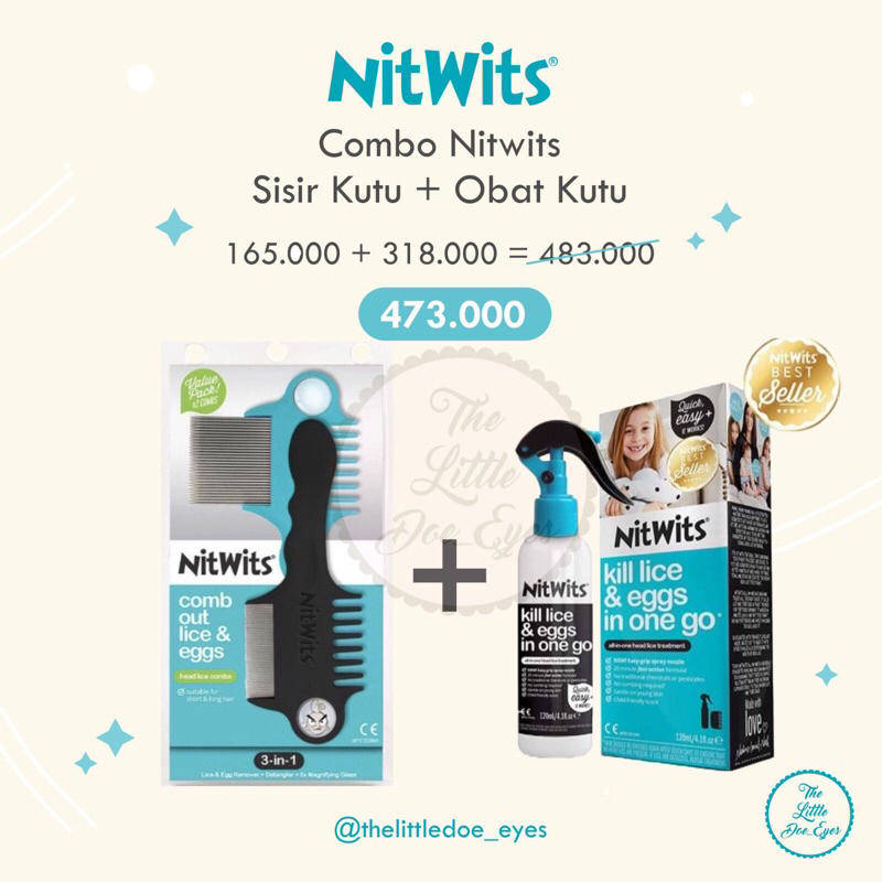 Sisir kutu Nitwits 3-in-1 untuk mengecek, menyisir dan menghilangkan kutu di rambut sampai ke telurnya.