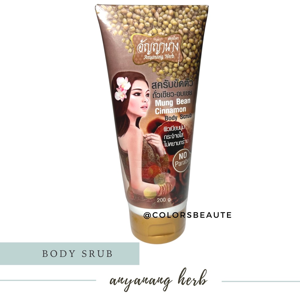 Anya Nang Herbal Lulur Kacang Hijau-Kayu Manis Bubuk Kacang Hijau dan Ekstrak Kacang Hijau membantu menyerap minyak dan membersihkan kulit Kayu manis mengurangi rasa gatal. dan alergi kulit Menggosok sel-sel kulit kusam memperlihatkan kulit tubuh yang halus dan putih.