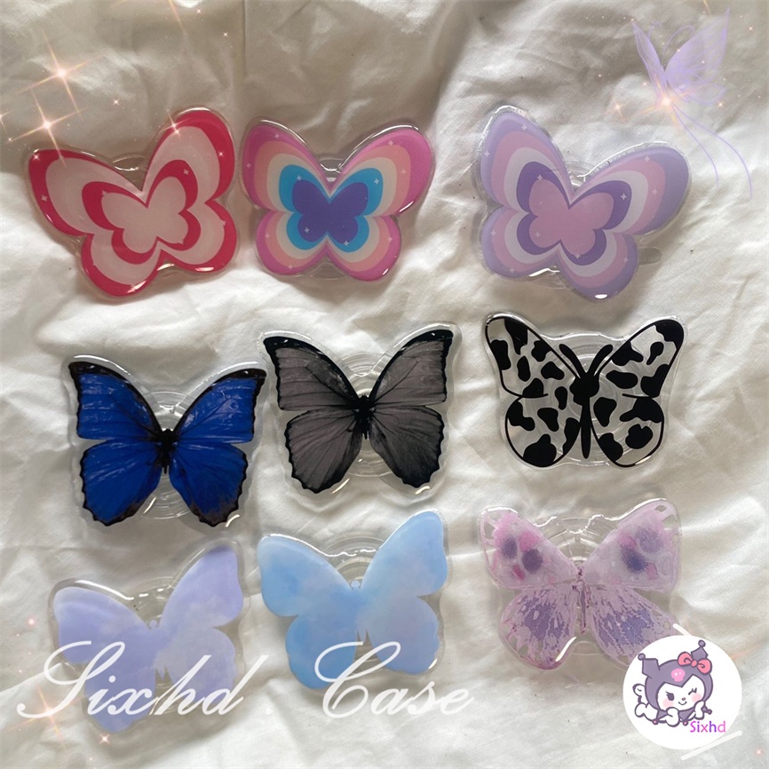 Handphone & Aksesoris > Handphone & Tablet Aksesoris > Phone Holder > Ready Stock Fashion Fantasy Hitam Kupu-Kupu Bracket Phone Grip Ins Korea Holder Ring Lazy Bracket Kompatibel Untuk iPhone Android Universal Scalable Phone Stand Holder