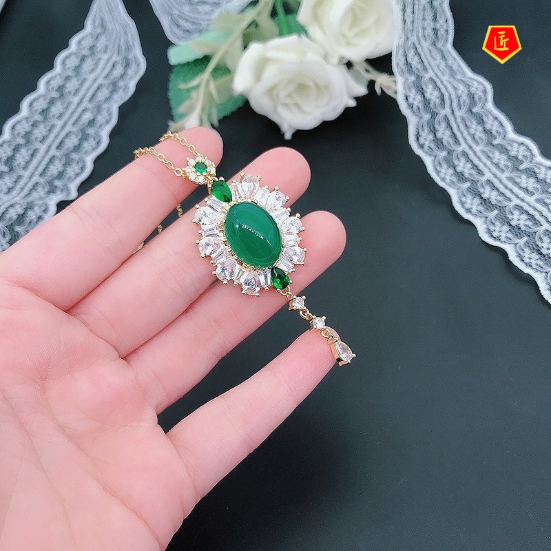 Detail [Ready Stock]Full Diamond Micro-Inlaid Chalcedony Pendant Necklace for Women Elegant Graceful