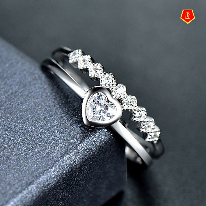 Aksesoris Fashion > Cincin > [Ready Stock]Korean Creative Fashion Heart-Shaped Diamond Double Layer Women's Ring