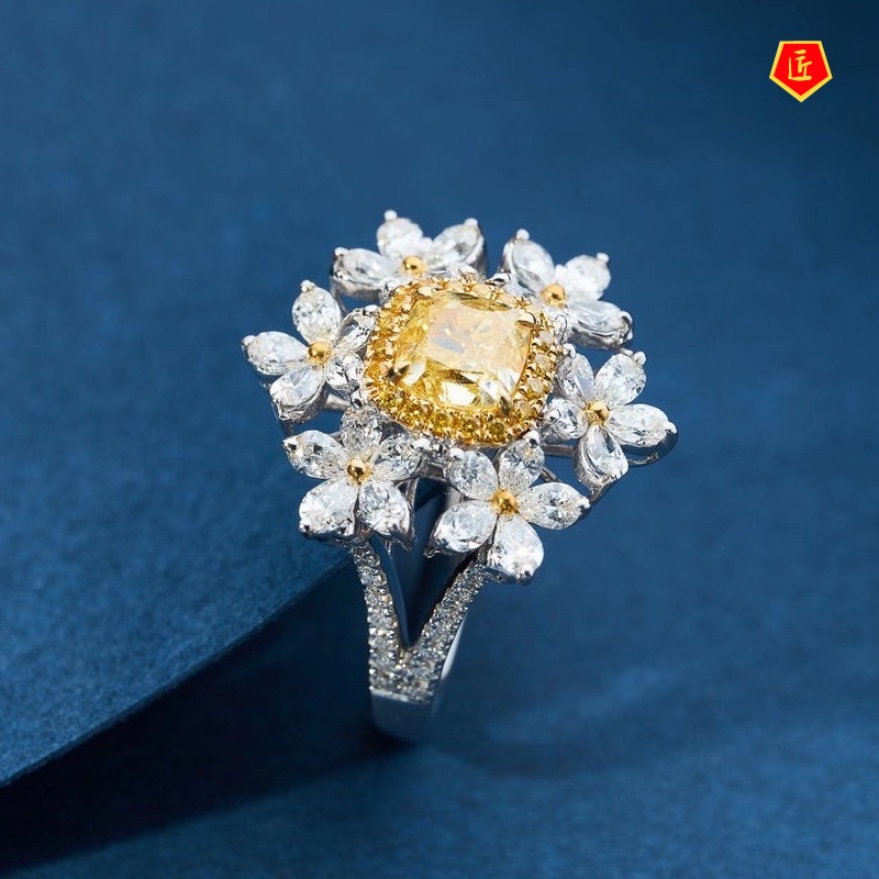 Detail [Ready Stock]Light Luxury Yellow Diamond Flower Ring