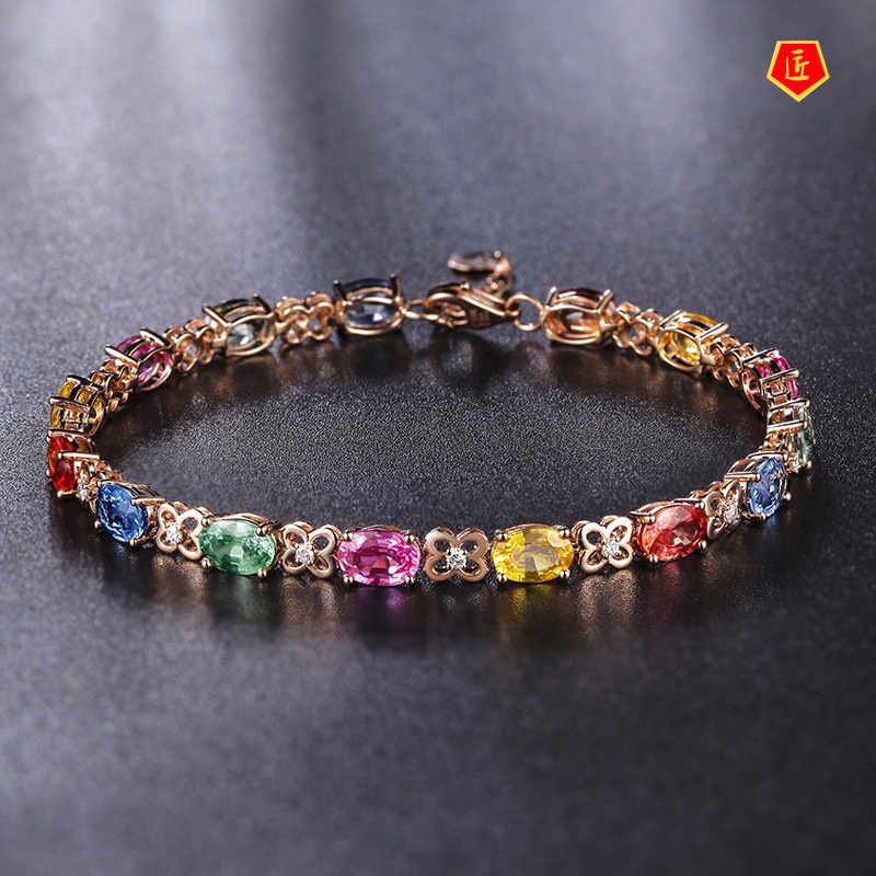 Aksesoris Fashion > Gelang Tangan & Bangle > [Ready Stock]Luxury Creative Gold Inlaid Colored Gemstone Bracelet