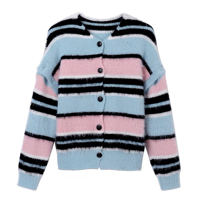 Detail [ready stock] olga fur set | sleeve adjustable cardigan rajut warna warni kancing button