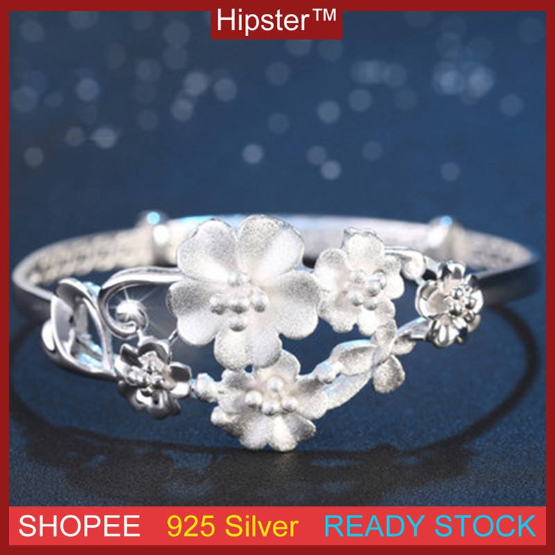 Detail Ready Stock Perak Gelang Fashion Elegan All-Match Buram Bunga Hollow Wanita Hadiah