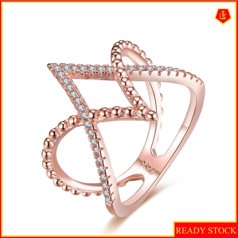 Detail [Ready Stock]Personalized 18K Rose Gold Diamond Lines Ring