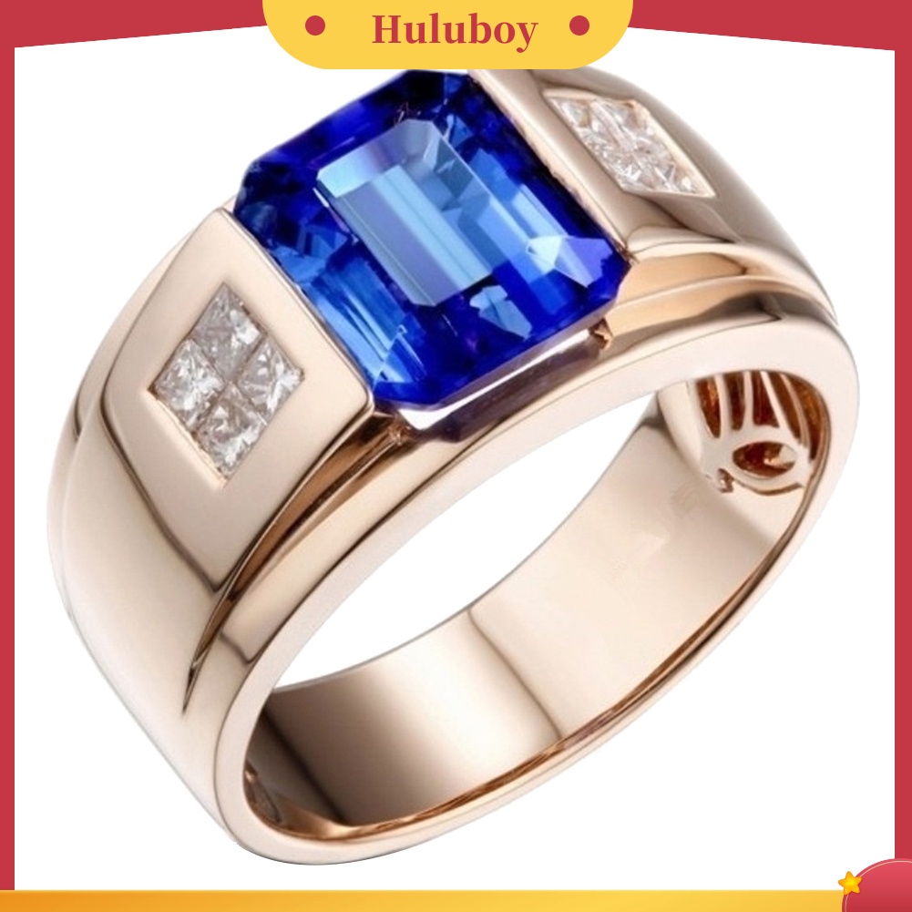 Detail {Ready Stock} Pesta Pernikahan Pria Persegi Berlian Imitasi Bertatahkan Lebar Band Jari Cincin Perhiasan Hadiah