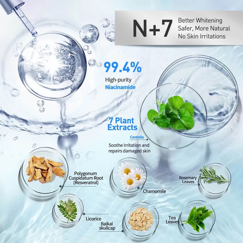 Deskripsi Produk 1. Diperkaya dengan formula Pro-N kami yang mencerahkan warna kulit, melindungi kulit dengan anti-oksidan dan mengecilkan pori-pori Anda secara efektif; 2. Esensi kami terdiri dari 7 ekstrak tumbuhan alami yang memiliki sifat lembut yang menenangkan dan memperbaiki kulit; 3. Air gletser Alpine alami dipenuhi dengan semua mineral alami yang sangat melembapkan dan mencerahkan kulit.