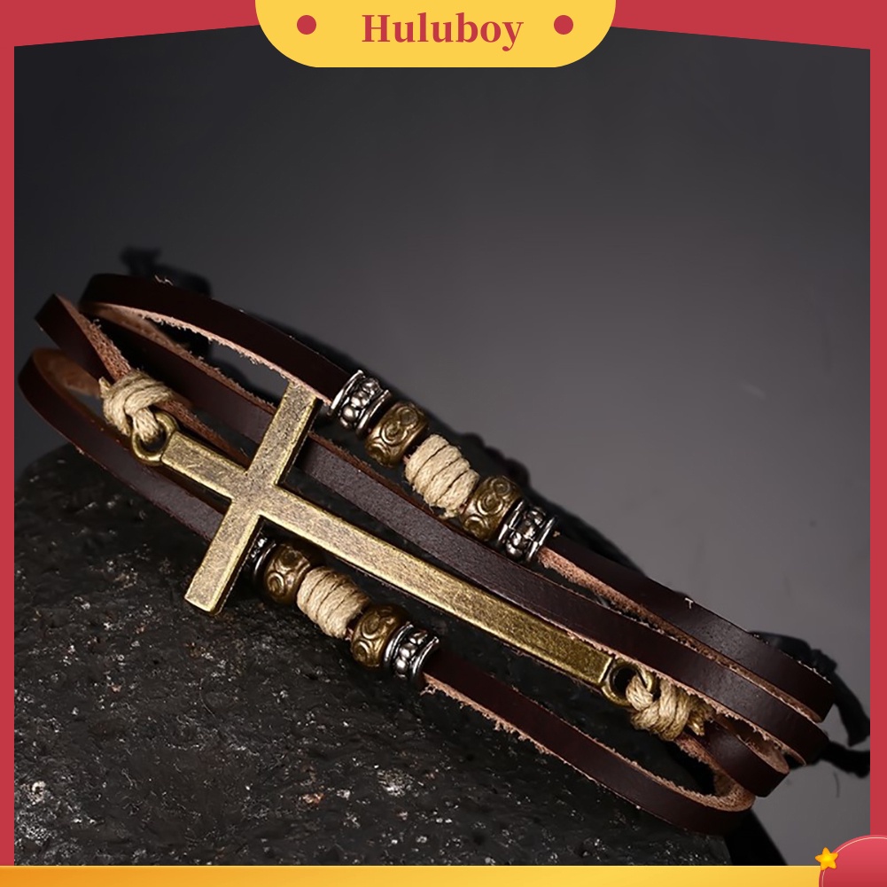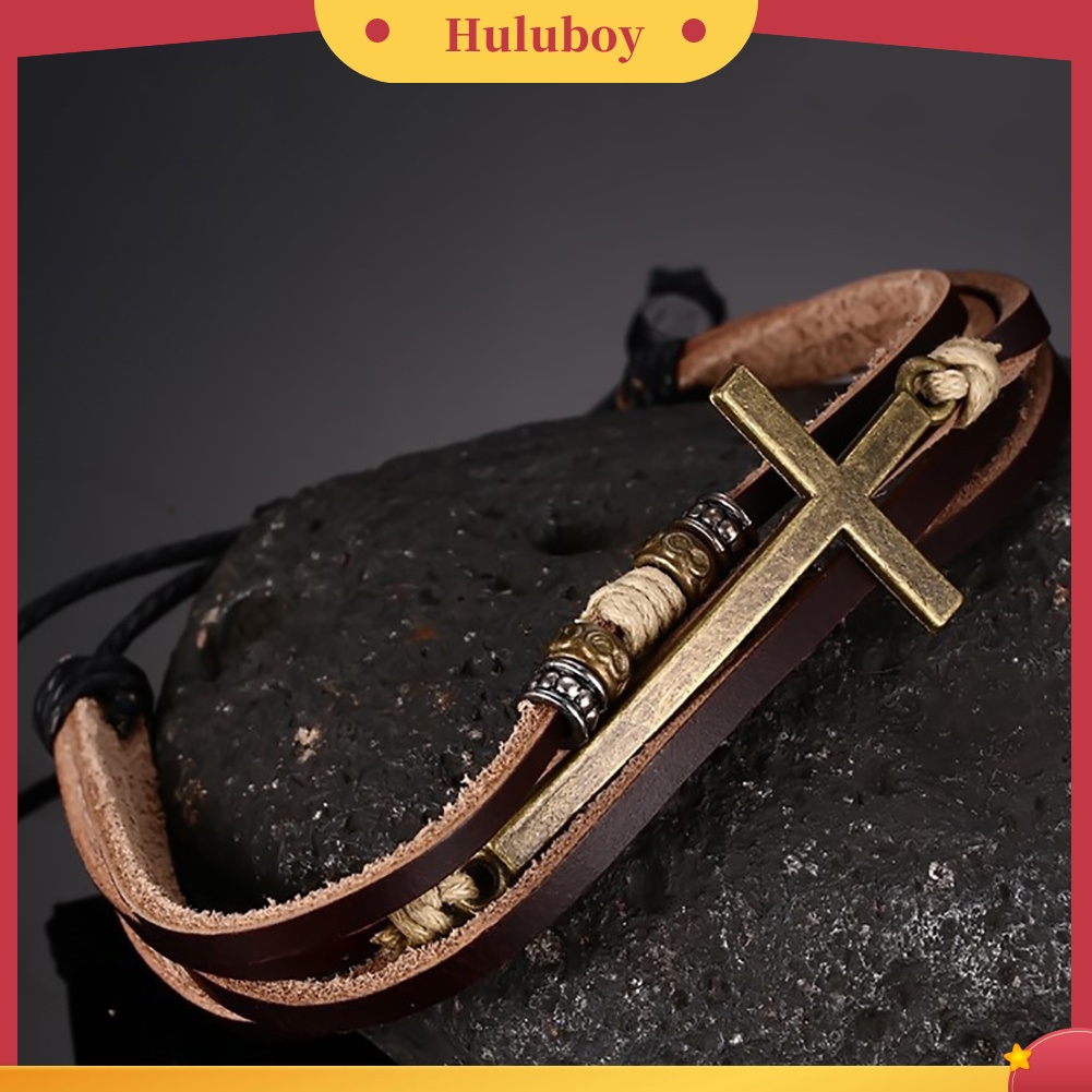 Aksesoris Fashion > Gelang Tangan & Bangle > {Ready Stock} Retro Kulit Imitasi Gelang Salib Bangle Wanita Pria Perhiasan Rantai Tali Yang Dapat Disesuaikan