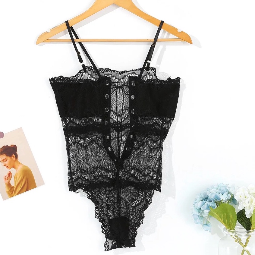 (Ready Stock) Sexy Lingerie Wanita Tipis Renda Cup Open Selangkangan Strappy Bodysuit 3B316