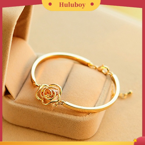 Gelang yang dipoles ini menampilkan pita ramping paduan berwarna emas dan pesona bentuk bunga mawar dengan tatahan kristal, cukup indah dan elegan. Tampilan maju mode yang luar biasa untuk menambahkan glamor pada gaya sehari-hari Anda.