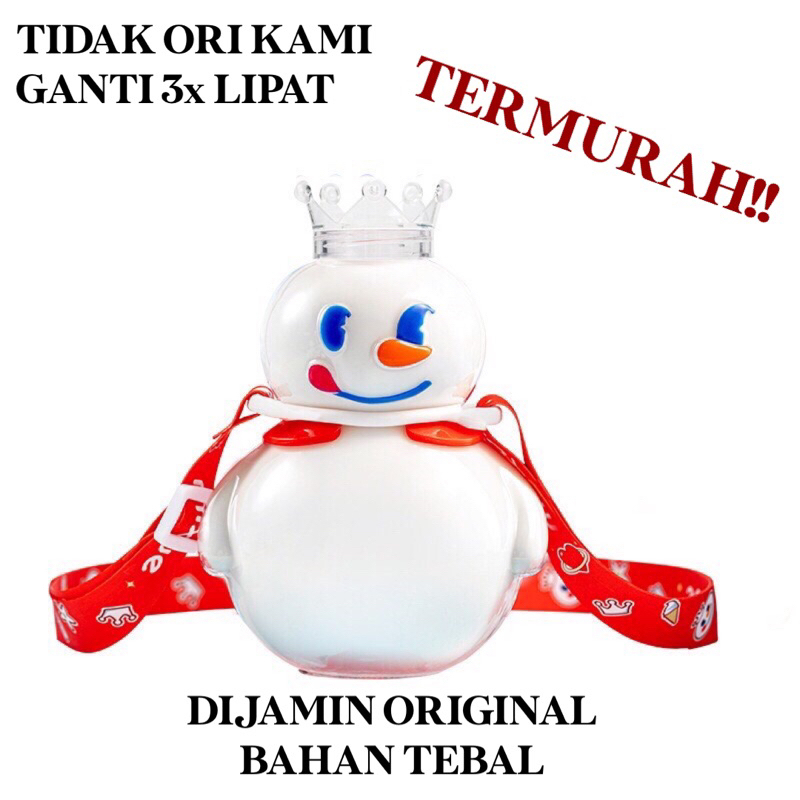 Botol minum yang sangat lucu, dengan motif boneka salju khas Mixue. Cocok dipakai untuk minuman segar seperti susu segar, milk tea, tea, ataupun infused water. Selain itu juga cocok dipakai sebagai pajangan (diisi butiran styrofoam putih atau kelereng)