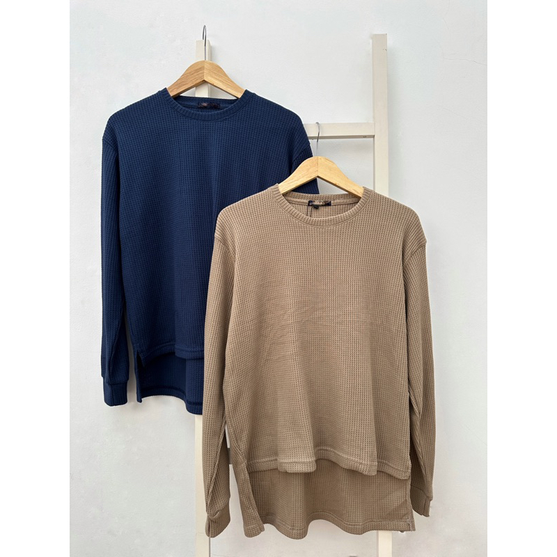 Detail READYBASIC - BAJU KAOS LENGAN PANJANG BELAH SAMPING BAHAN WAFFLE BIG SIZE LD110CM