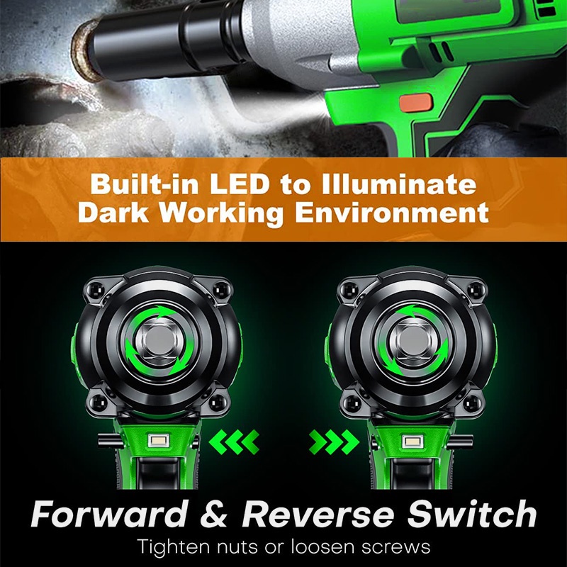 Detail Reaim 13MM Cordless Impact Wrench 2 Baterai 520N.M Impact Baterai Mesin Bor Impact batre Impact SUNC Bor Obeng Kunci Model: reaim-ddbs001