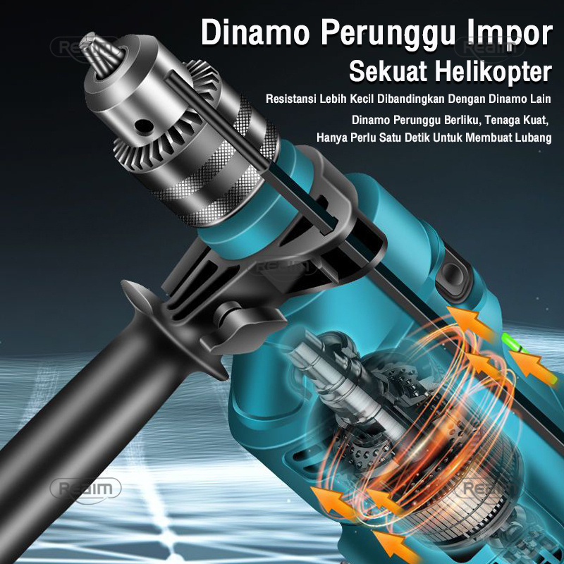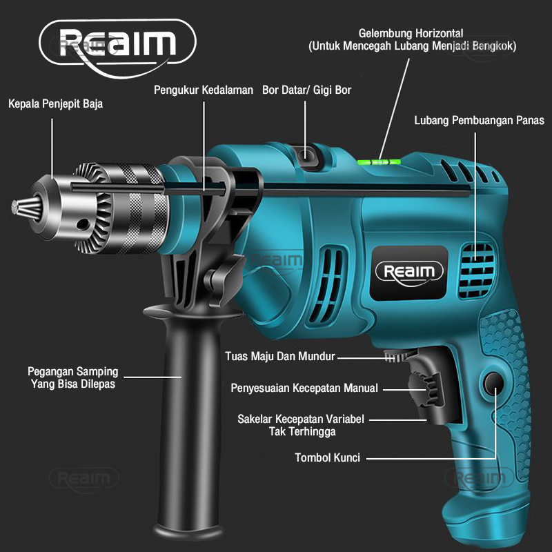 Perlengkapan Rumah > Perkakas > Bor, Obeng & Aksesoris > Reaim Mesin Bor Listrik 2 Arah Bolak Balik 13MM Impact Drill Listrik Tipe 10-3 / Electric Drill Reversable 700 W Bor beton Bor besi Bor kayu kualitas terbaik dikelasnya putaran bolak balik Mesin Bor Tangan Mesin