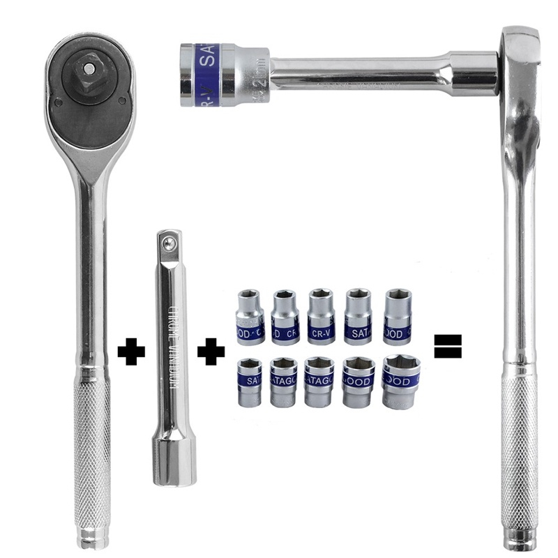 Detail Reaim Obeng Kunci Socket 1/2inch(12.5mm) Set 12 Pcs Socket 8 - 24mm Ratchet Spanner Mata Socket impact set Sok Panjang kunci sock impact set- Box Besi