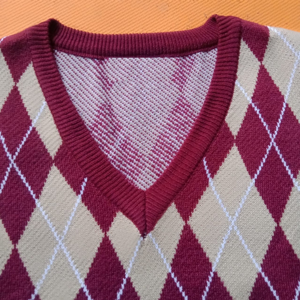 Rompi rajut Argyle Premium Dibuat dengan Mesin Rajut Komputer Bahan : Rajut Model : Argyle Ukuran : LD: 110 CM Panjang badan : 50 CM