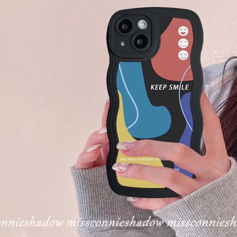 Detail Realme 10 C33 C30 9 9Pro 8i C25Y C35 C12 C15 C11 C25s C25 6i 5i C3 C21Y C20 7 7I 85 5s C2 C20A Ins Abstrak Art Moranti Jahitan Kontras Smiley Bunga Lembut Hitam Bergelombang Tepi Case