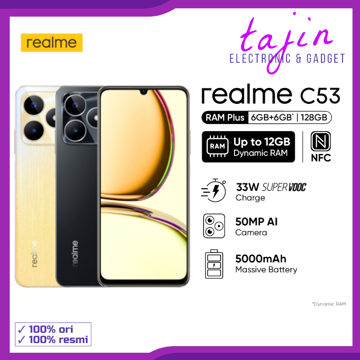 Spesifikasi singkat: 33W SUPERVOOC Charge 5000mAh Massive Battery Up to 12GB Dynamic RAM + 128GB ROM 50MP AI Camera "7.49mm Ultra Slim Shiny Champion Design" 17.13cm(6.74'') 90Hz Display Powerful Octa-core Chipset Mini Capsule 8MP Selfie Camera Up to 2TB External Memory UltraBoom Speaker Fast side fingerprint sensor Multi-functional NFC