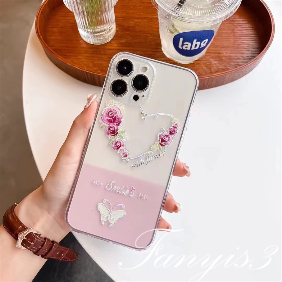 Handphone & Aksesoris > Casing & Skin > Casing & Skin Handphone > Realme C55 C35 C31 9 Pro+ C25Y C21Y C25 C25s C12 C21 C20 C20A C11 C17 7i C15 8 7 6 5 Pro 8i 5i 5s 6i Narzo 50A 50i Ins Flower Butterfly Phone Case Bening TPU Lembut Sarung Pelindung