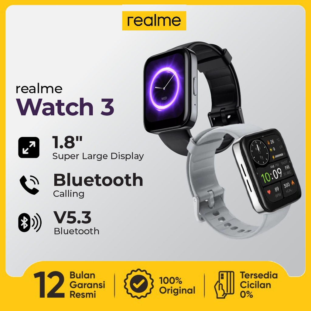 Video perkenalan produk Realme Watch 3 Smartwatch 1.8 inch Large Color Display Clear Bluetooth Calling 110+ Sports Modes Health Monitoring 7-Day Battery Life Jam Tangan. Sumber: Shopee.