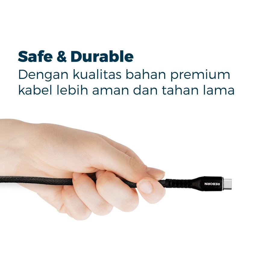 * Kuat dan Aman Kabel Data Reborn R-C100 sudah menggunakan High Quality Premium Nylon Braided dengan ujung TPU Premium sehingga proteksi kabel lebih baik dan lebih awet. Dengan fitur Smart Over Current Protection yang efektif mencegah kerusakan baterai ponsel.