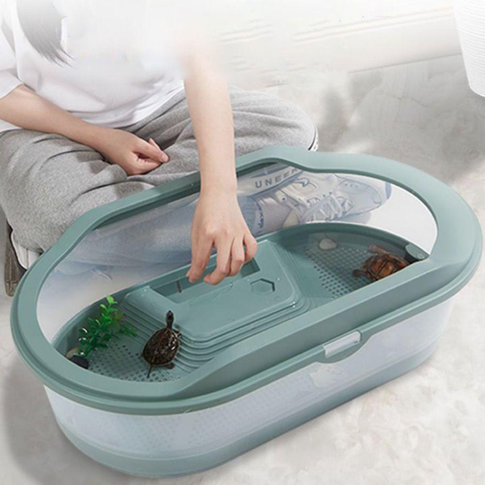 Bersihkan: Dapat Dilepas, mudah dibersihkan. Mudah dibersihkan. Tangki Penyu Reptil Rumah Penyu Makan Kotak Reptil Habitat Aksesoris Hewan Peliharaan Kecil dengan Pulau Basking Plastik Tahan Lama Multifungsi Praktis 1 PC