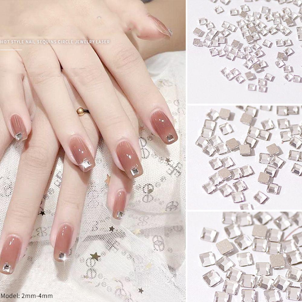 Detail Rebuy Square Nail Jewelry Fashion Sparkly Kecil Persegi Permata Manicure Kristal Kuku Pesona Berlian Imitasi Kuku Persegi