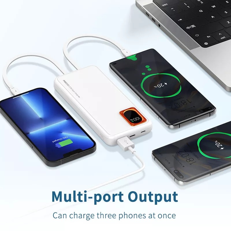 Main Features: - Built-in Cable Lightning & Type-C - Support PD 20W Fast Charge for Lightning Cable - Support 22.5W Fast Charge for Type-C Cable - Multi-port Output, can charge three phones at once - LED Smart Display