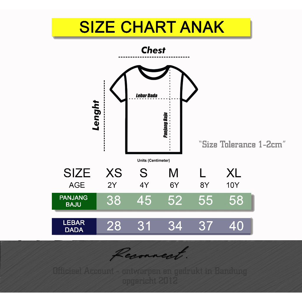 Size Chart Dewasa (Panjang x Lebar Dada) : - XS : 61 x 44 cm - S : 64 x 46 cm - M : 67 x 48 cm - L : 70 x 50 cm - XL : 73 x 52 cm * Toleransi jahit 1-2cm