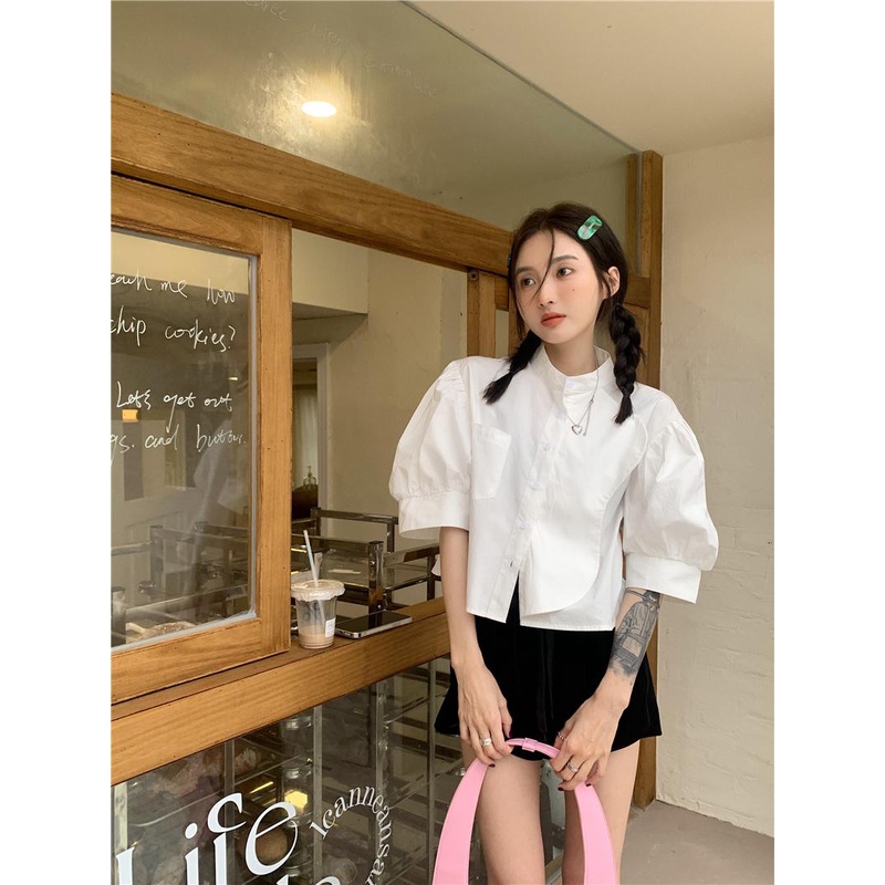 Detail Red 08#Tembakan Nyata Hemat Biaya Kemeja Longgar Lengan Puff
