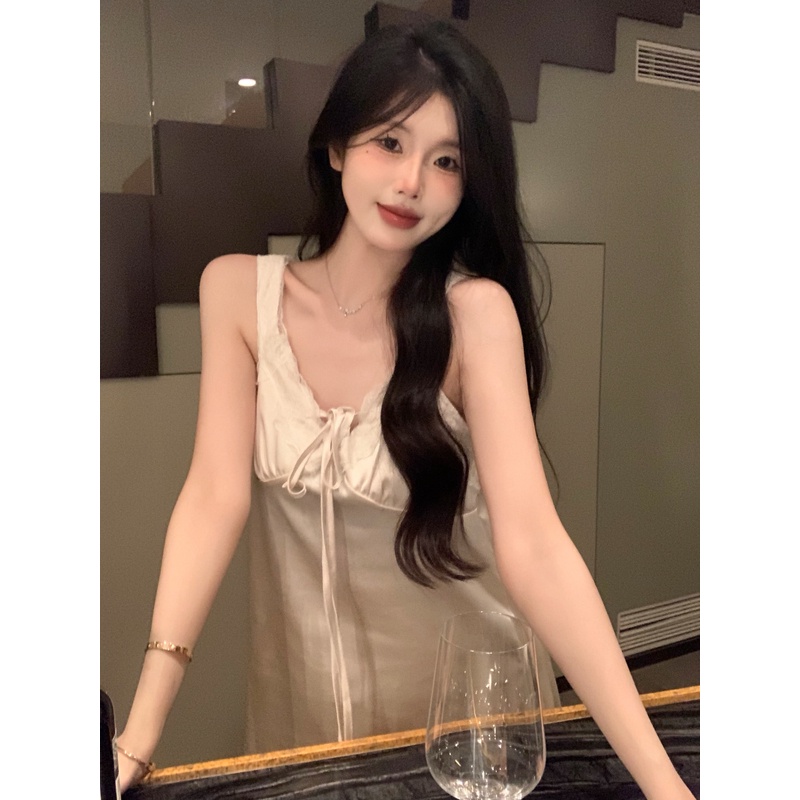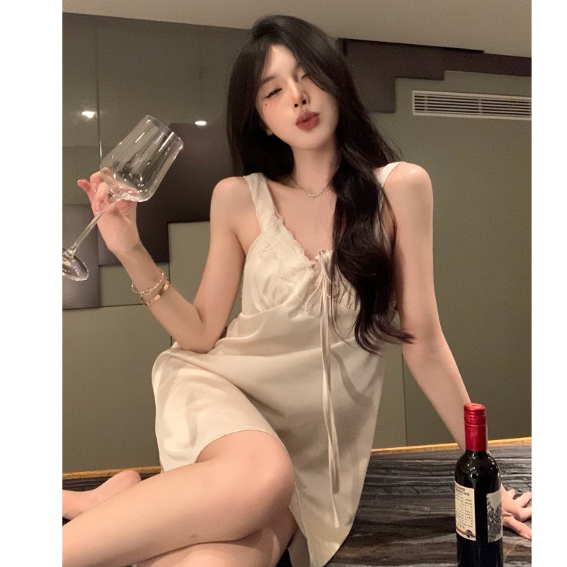 Detail Red 2023 Musim Panas Baru Renda Ikatan Simpul Suspender Gaun Seksi Murni Keinginan Babes Slim Halus Baju Tidur Wanita
