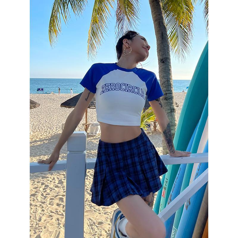 Red Atasan Pendek Babes Inst-Kemeja Wanita Musim Panas American Retro Street Pengurangan Usia Babes Slim Fit Jazz Dance Atasan