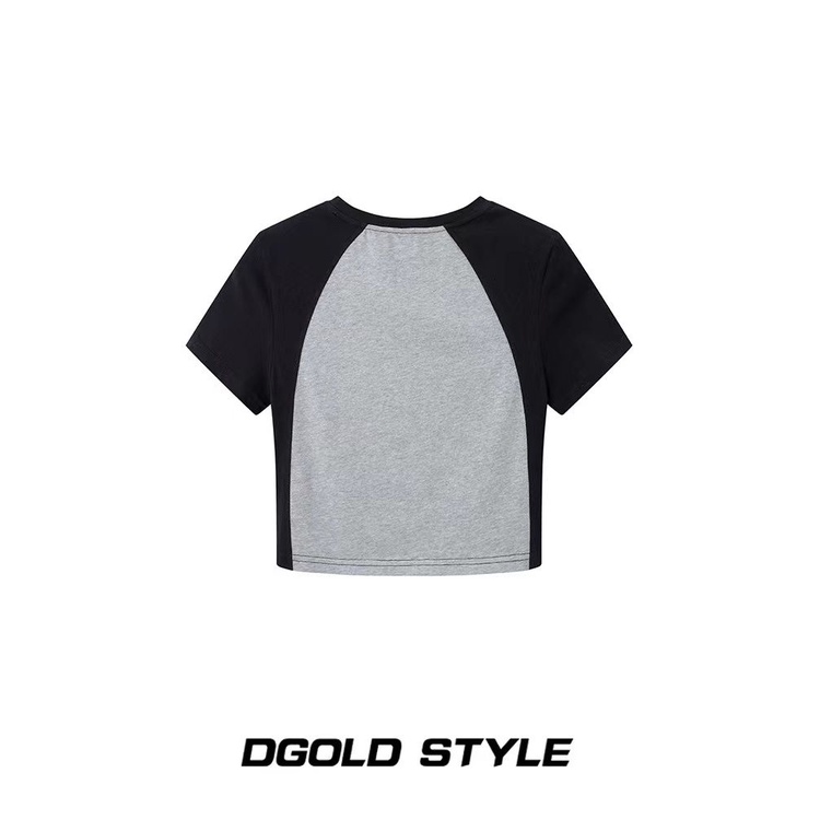 Red Bai Xiaoyu Musim Panas Awal Desain Asli Bahu Raglan Warna Yang Sesuai dengan Lengan Pendek T-shirt Slim Fit Gadis Pendek Top