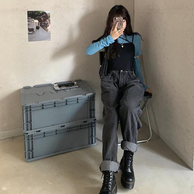 Detail Red Baju one-piece siswa perempuan trendi gaya Korea chic dilepas dua-pakai kaos leher bulat warna solid + kamisol hitam wanita