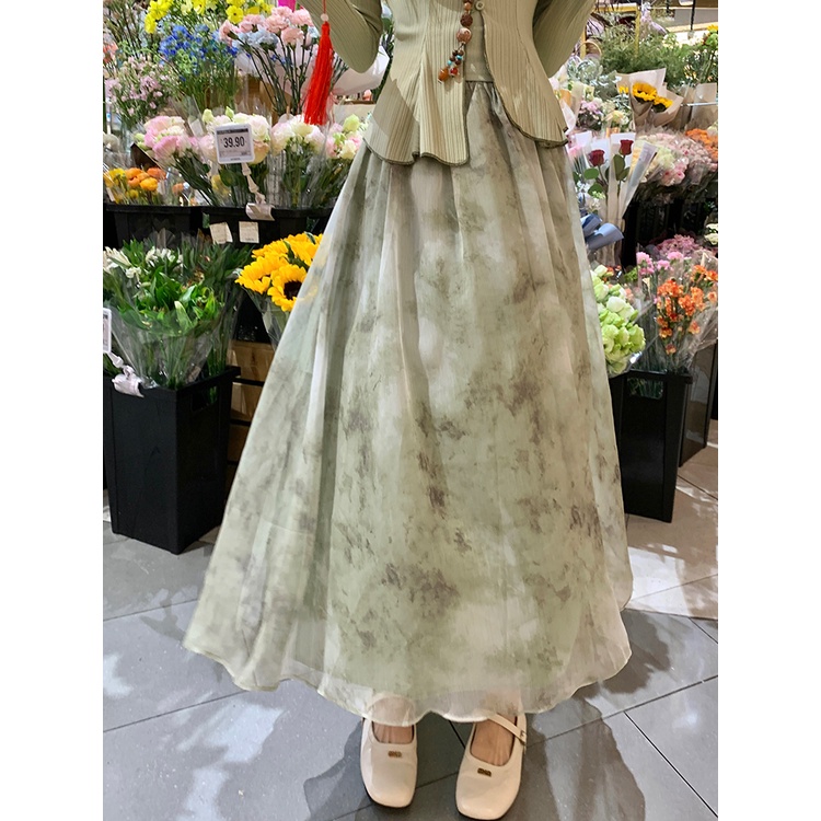 Detail Red Baru Gaya Nasional Gaya Cina Zen Suit Wanita Musim Panas Baru Mantel Jaket Tie-Dye Rok Cardigan Dua Potong Set