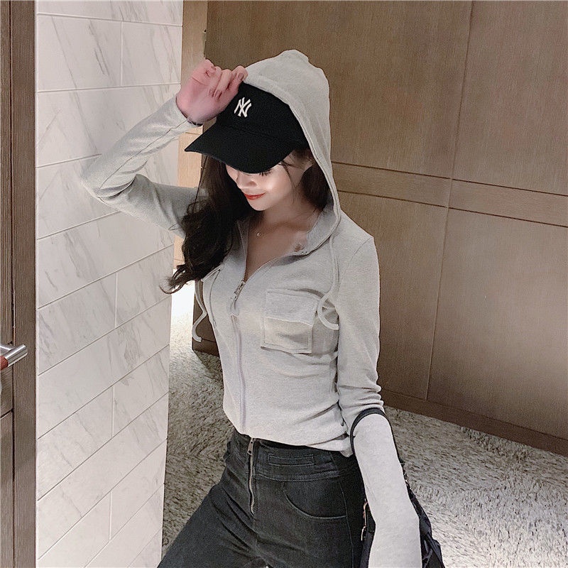 Detail Red Berkerudung Lengan Panjang Rajutan Sweater Kecil Jaket Pendek Manset Ritsleting Slim Fit All-Match Top Bottoming Kemeja Fashion Korea wanita