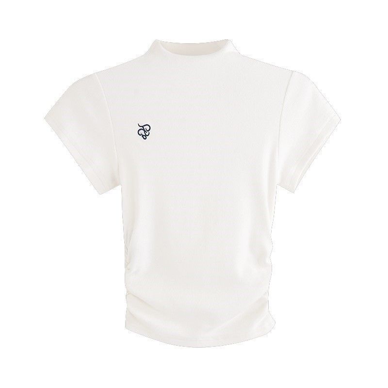 Detail Red BOTIANGE all-match buku teks warna solid kerah setengah tinggi bordir T-shirt wanita slim slim top hot girl