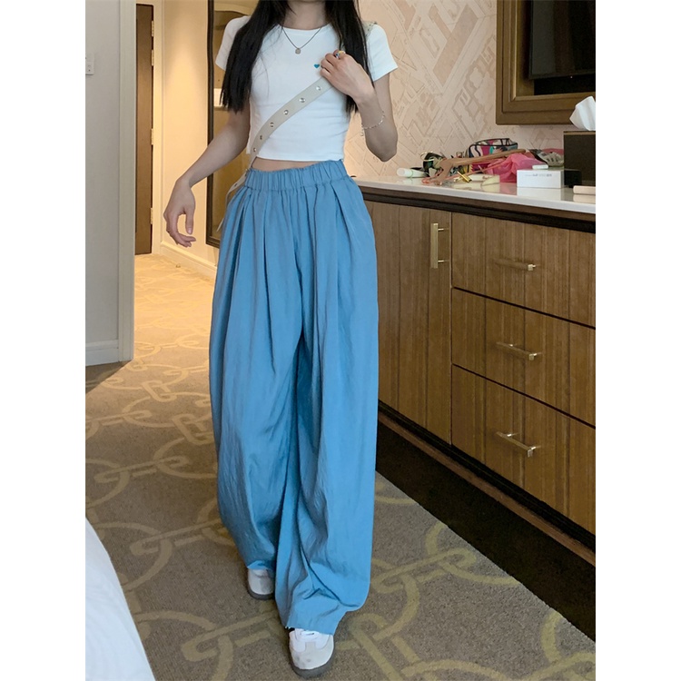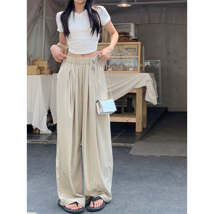 Detail Red Celana kasual Jepang wanita musim panas tipis celana pinggang tinggi vertikal celana longgar celana lipit celana lebar kaki celana trendi