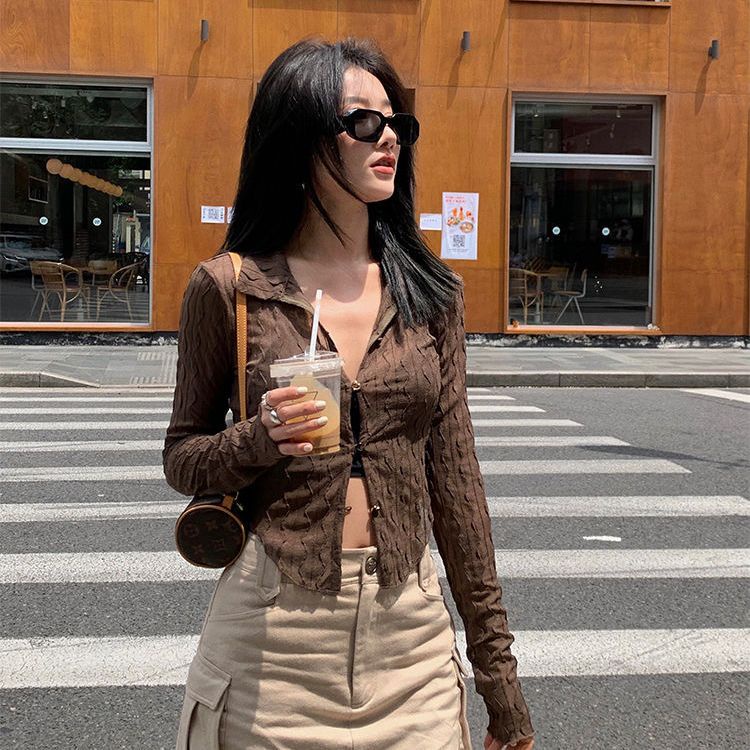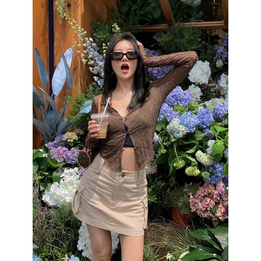 Red Di sebelah kiri blus tipis berongga wanita dengan kardigan lengan panjang musim panas 2022 perspektif baru kemeja tabir surya pendek